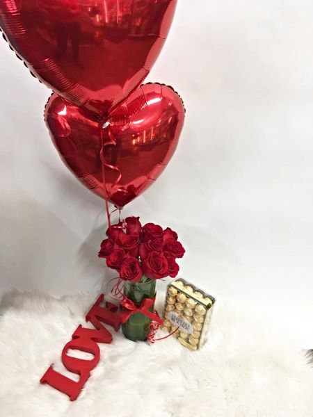 Sweet 12 Roses With Ferrero Rocher Chocolate Mylar Balloons Guarantee Deliver Same Day Every Day